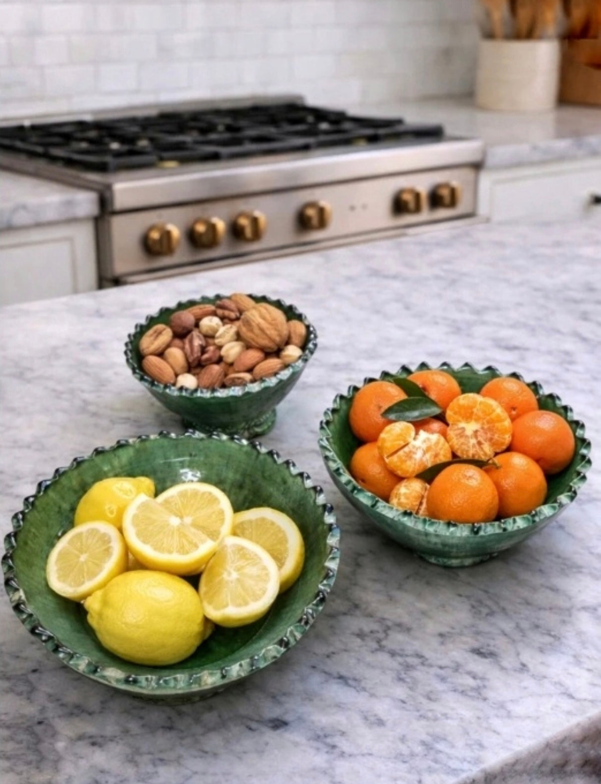 Each bowl is made from natural clay and finished with the iconic Tamegroute green glaze, known for its earthy tones, rustic green texture, and beautiful imperfections. No two pieces are exactly alike – making every set truly one of a kind.