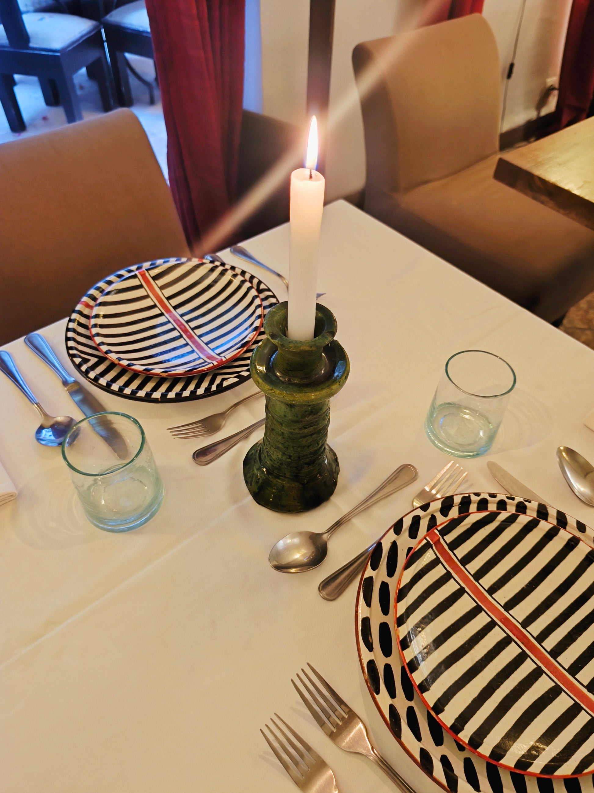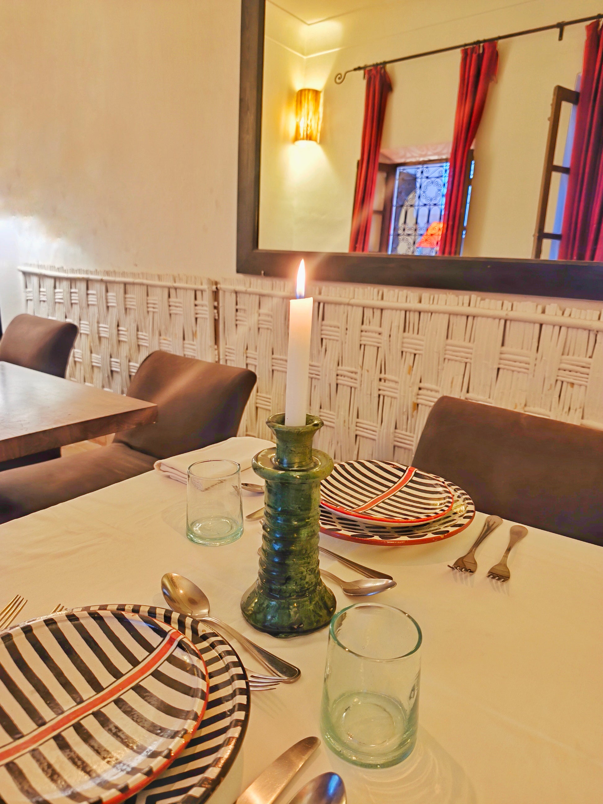 Illuminate your home with the timeless beauty of Moroccan craftsmanship. These green Tamegroute candle holders are handmade in the historic village of Tamegroute, near the edge of the Sahara Desert. Each piece is unique, showcasing the village’s centuries-old glazing technique that gives it a rich green tone and rustic charm.