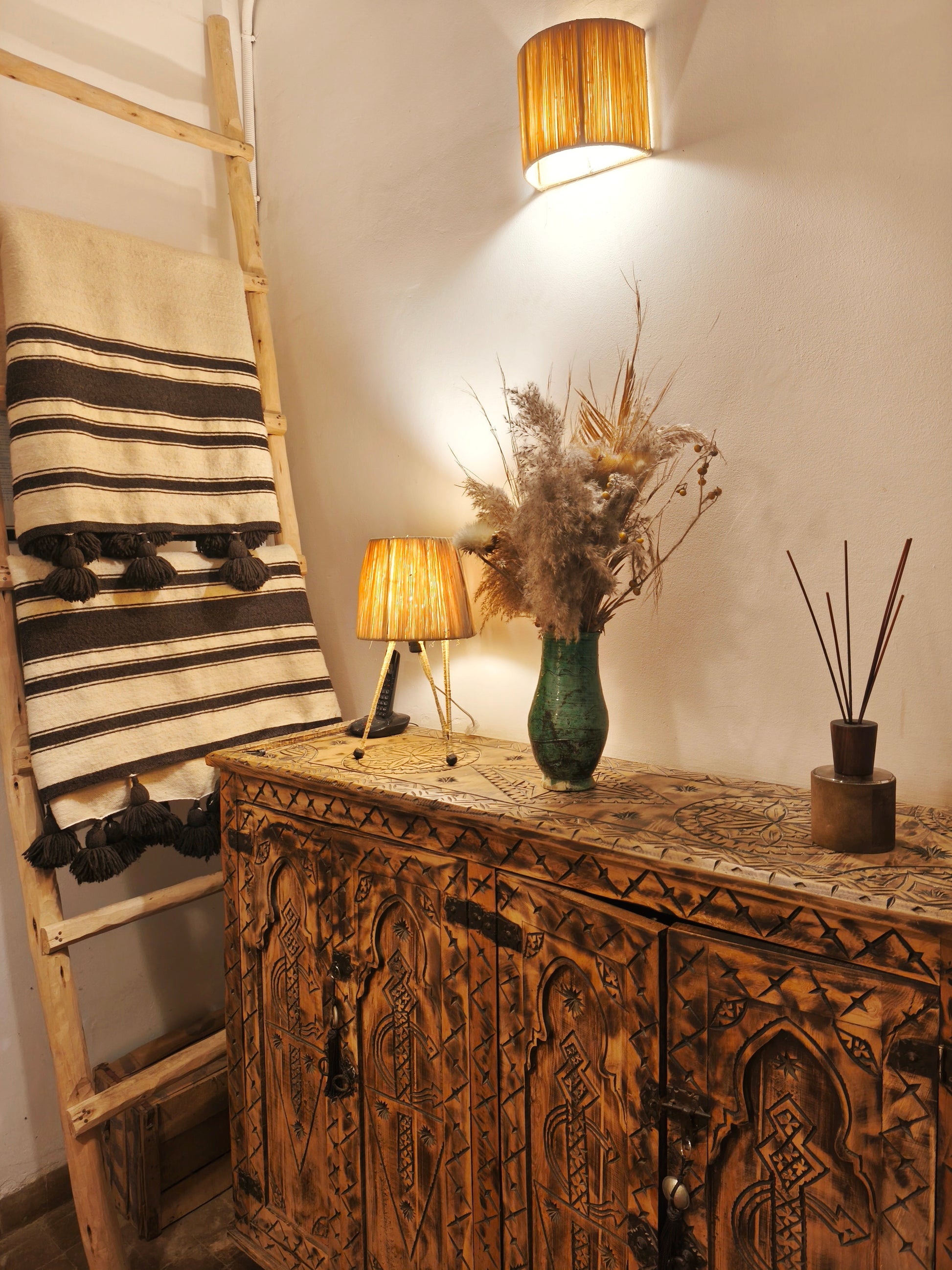 Bring Moroccan charm into your home with this authentic green Tamegroute pottery vase, handmade in southern Morocco. Each piece is uniquely glazed with earthy green tones and natural imperfections that tell its story. Perfect for dried flowers, boho interiors, or rustic table decor. A timeless artisan creation from the heart of Morocco.