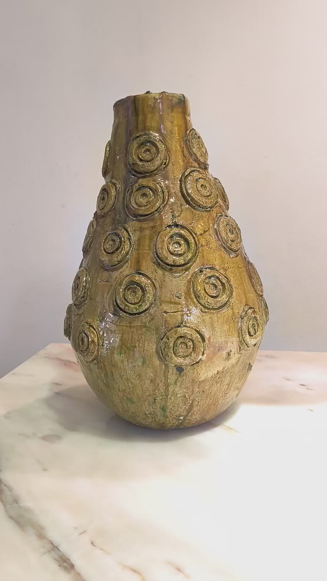 Handmade Golden Tamegroute Vase - Moroccan Ceramic Pottery with Spiral Pattern