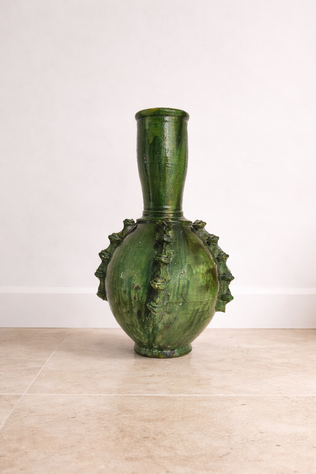 Tall Handmade Tamegroute Green Vase – Sculptural Moroccan Pottery Statement Piece
