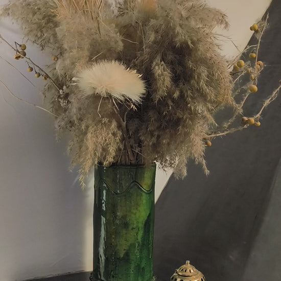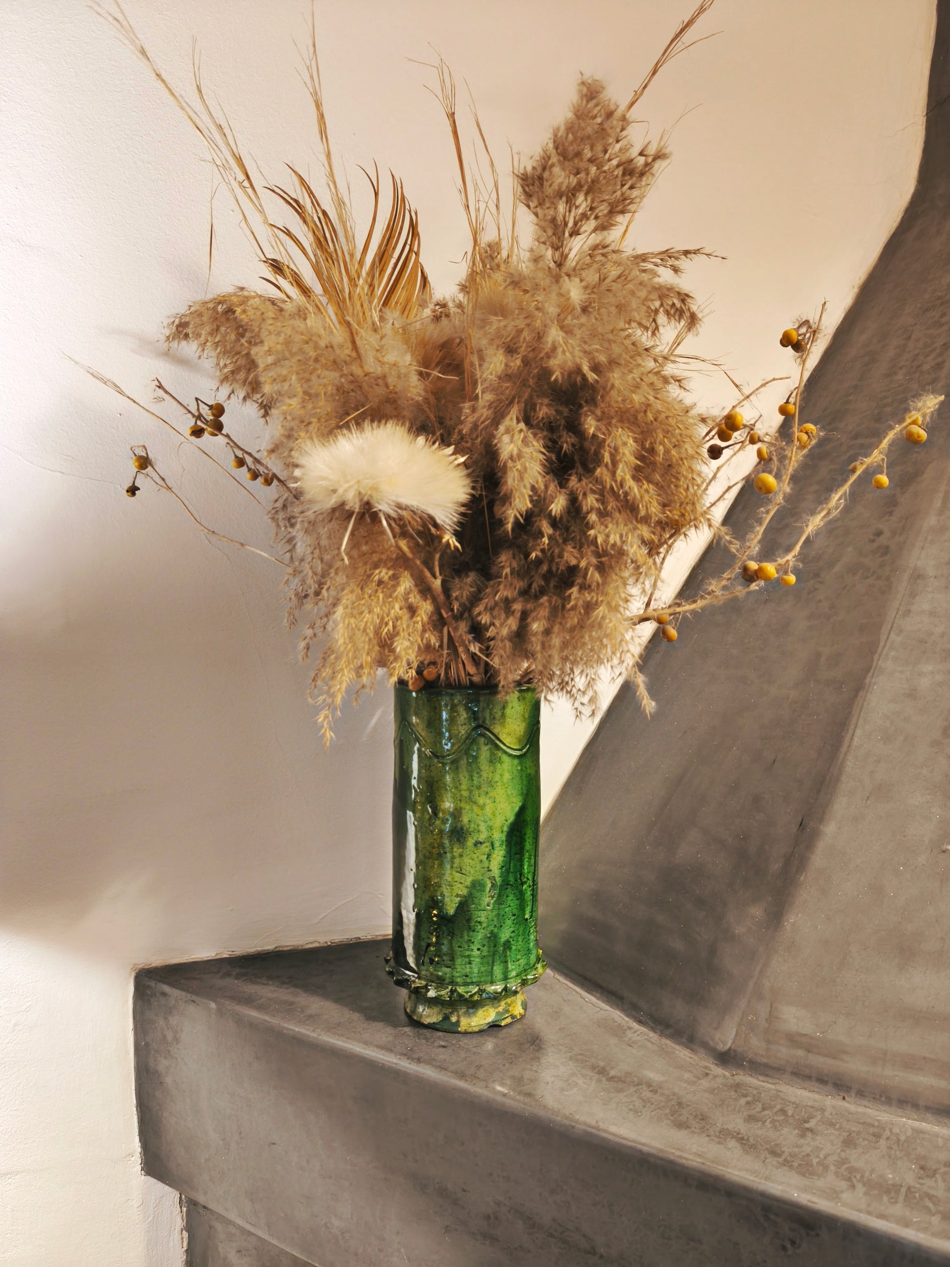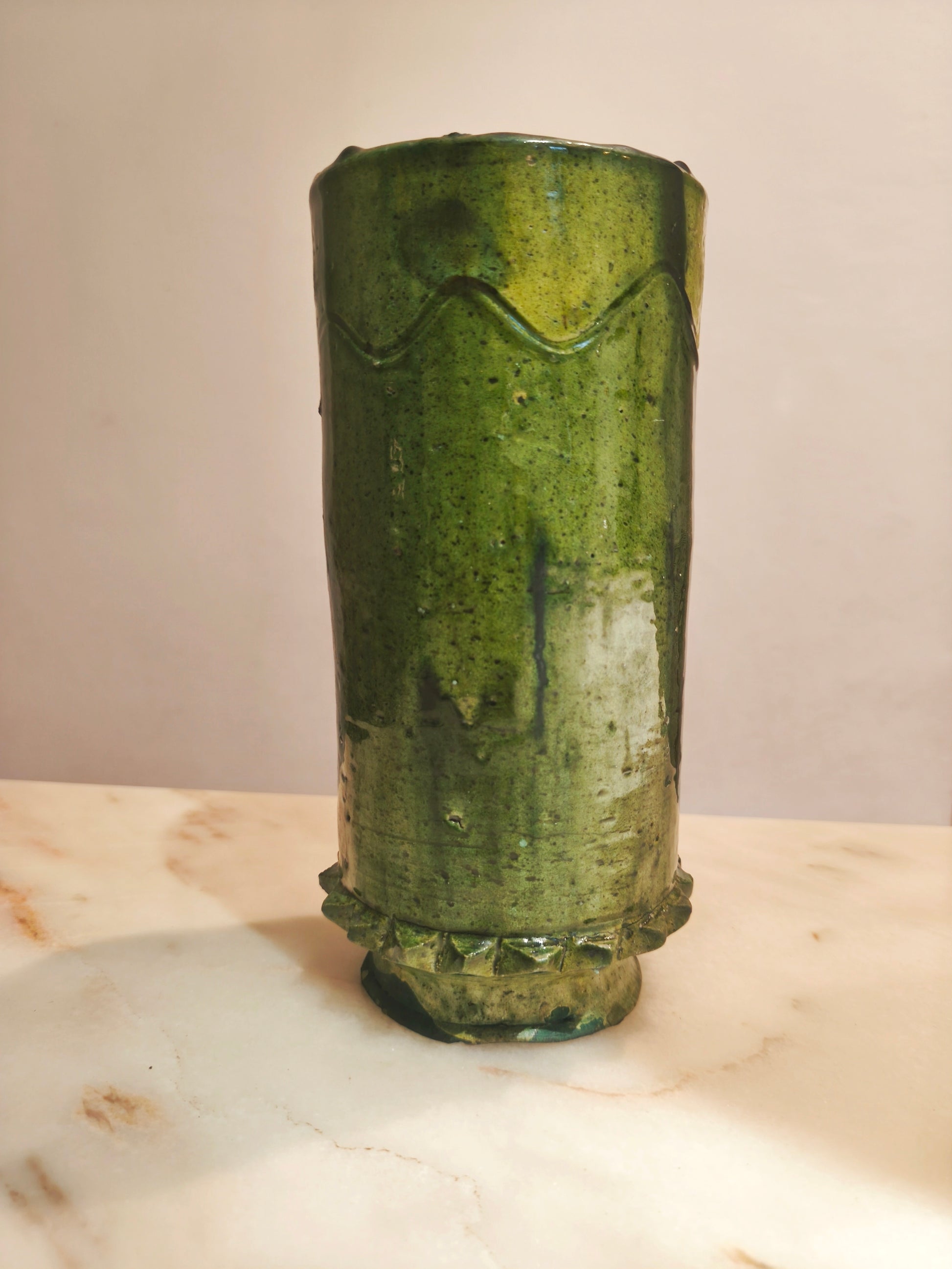 Each vase is a unique piece of Moroccan heritage, shaped by hand and finished with the region’s signature green glaze, a technique passed down through generations. Its organic texture and natural imperfections reflect the beauty of true craftsmanship — no two pieces are ever the same.